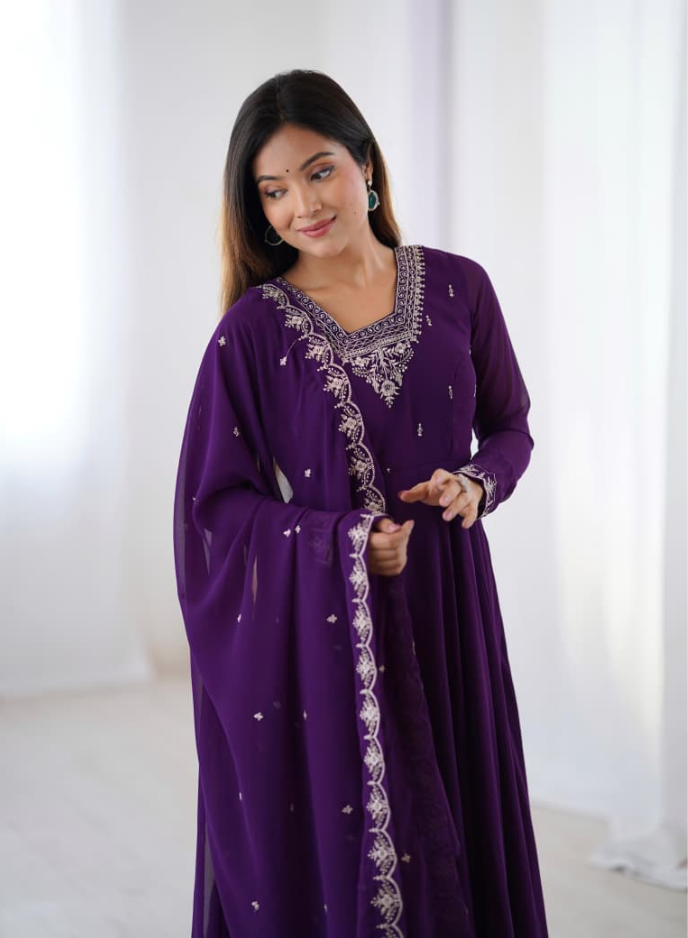 Pure Natural Crepe With Heavy Embroidery Kurta Pant and Dupatta Set